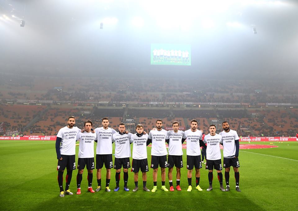 I giocatori del Cagliari hanno mantenuto la promessa e sono scesi in campo a San Siro con una maglia con su