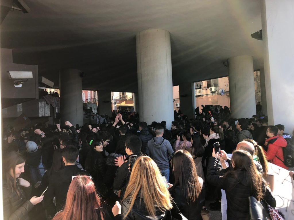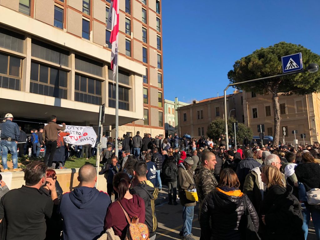 Gli studenti delle scuole superiori di Cagliari in piazza al fianco dei lavoratori. Il corteo è passato sotto il Consiglio Regionale